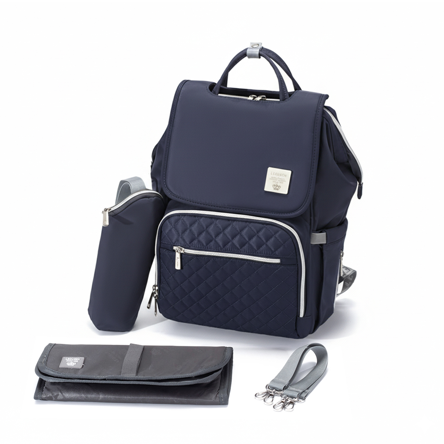 Lequeen Diamond Collection 7th Generation Diaper Bag – waterproof, multifunctional, and stylish with multiple compartments, bottle warmer and USB port.