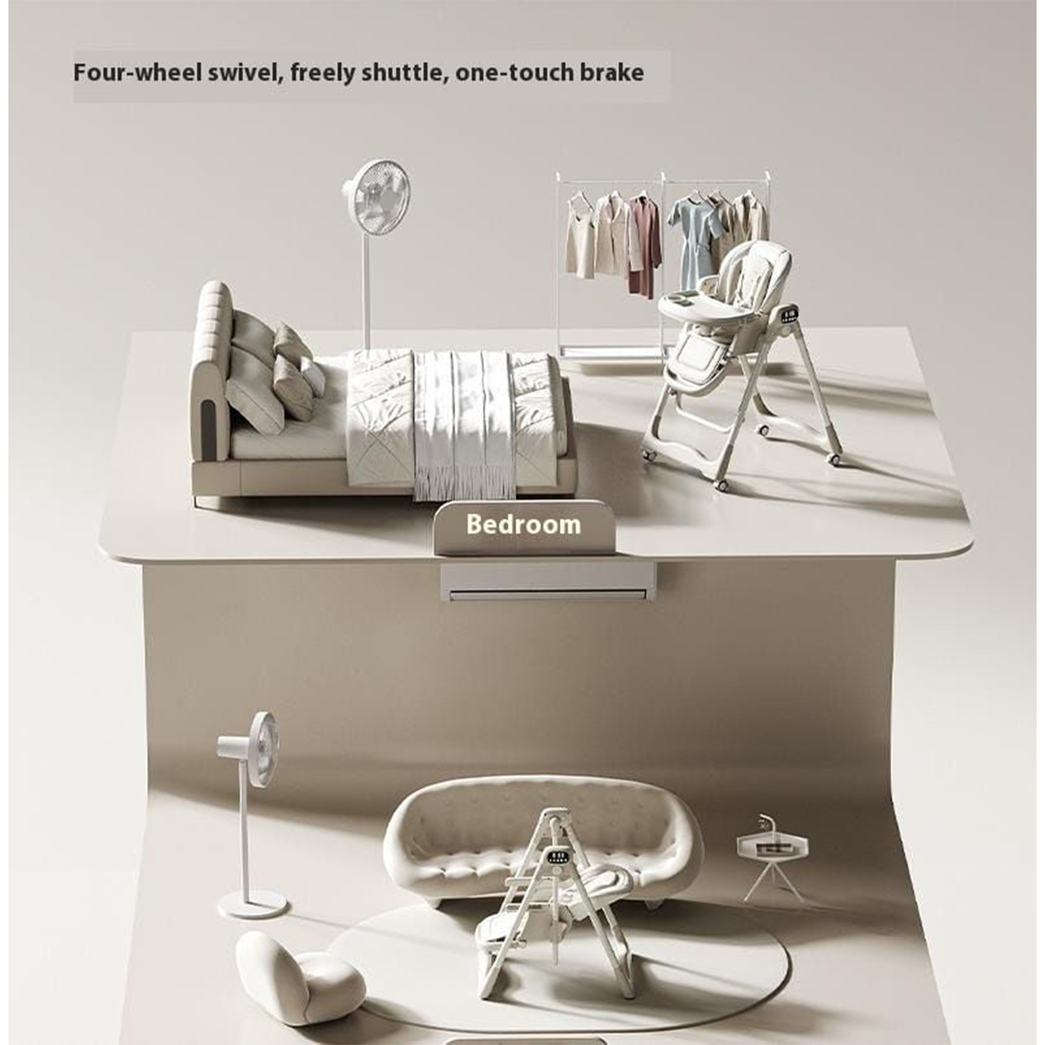 - Design & Mobility: The chair features 360° universal wheels for easy movement, which can often be locked for safety or removed. It also has an adjustable backrest with multiple recline positions and a five-point safety harness for full protection.